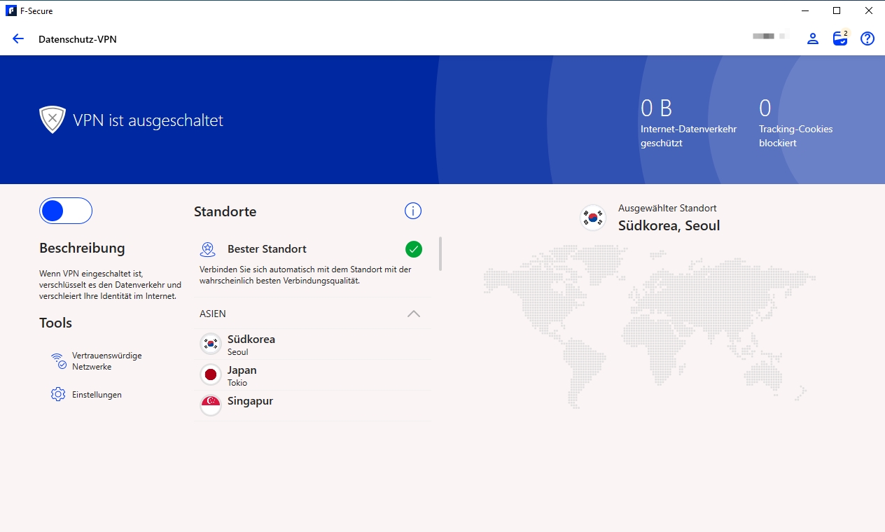 Verschlüsseln Sie Ihre Verbindung mit einem Klick und verbergen Sie Ihre echte IP-Adresse vor neugierigen Blicken. Der integrierte VPN-Dienst bietet unbegrenztes Datenvolumen, stabile Verbindungen und praktische Extras wie den Kill-Switch, der bei Unterbrechungen automatisch absichert. Ebenso wählen Sie auf Wunsch einen virtuellen Standort, um unterwegs zusätzliche Privatsphäre zu gewinnen. Beim Online-Banking schafft ein geschützter Modus eine besonders sichere Umgebung, während ein Shop-Check Ihnen signalisiert, ob ein Händler vertrauenswürdig ist. Mit der F-Secure Total Security & VPN Vollversion genießen Sie Sicherheit auf Desktop und Mobilgerät – auch im Café-WLAN. Wenn Sie F-Secure Total Security & VPN kaufen, kombinieren Sie Verschlüsselung, Tracking-Schutz und Web-Filter zu einem alltagstauglichen Gesamtpaket.